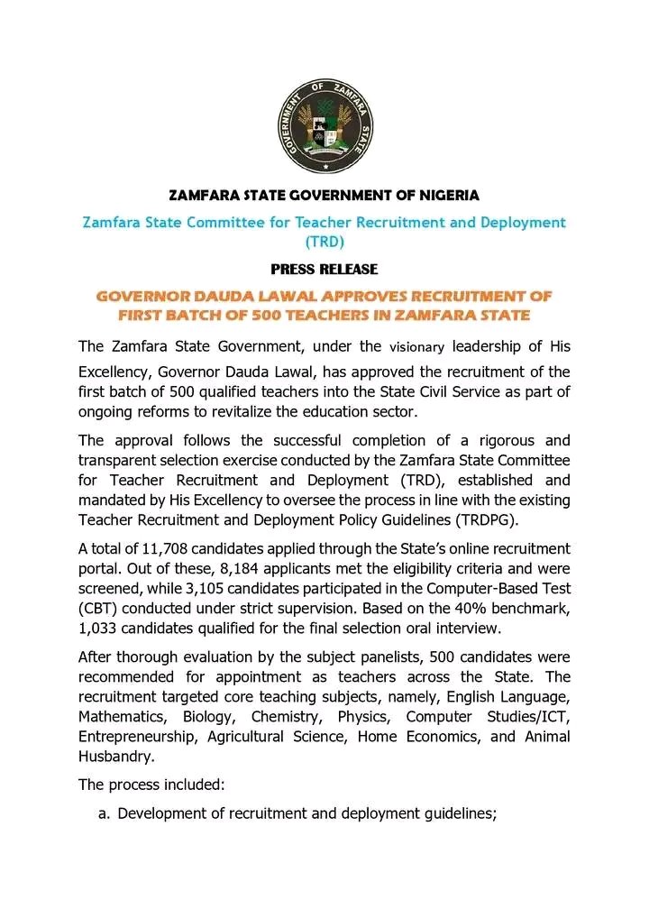 Job Vacancies1 Min Read JobmetricsonNovember 7, 2025 Link to Check Zamfara State Teachers 2025 Recruitment Successful Candidates The Zamfara State Government wishes to inform the general public, particularly applicants of the 2025 Teacher Recruitment Exercise, that the… Discover More