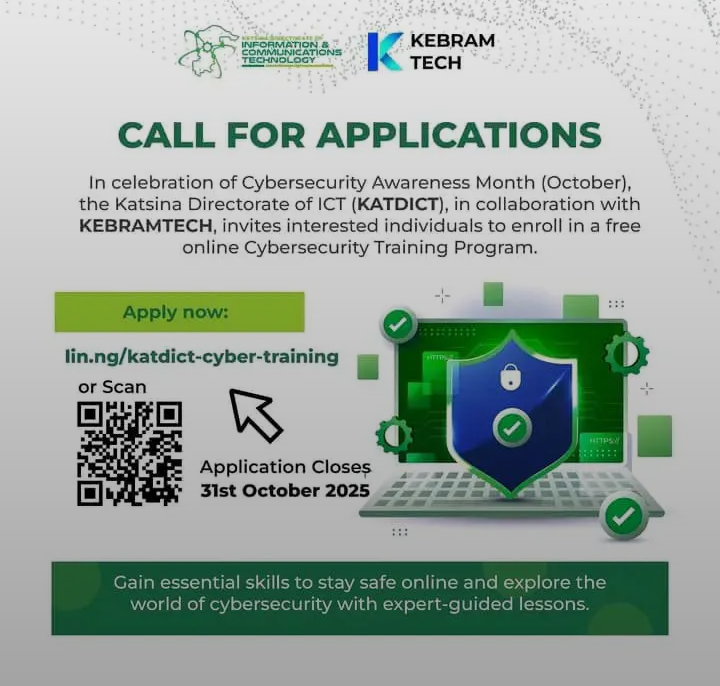 Job Vacancies1 Min Read JobmetricsonOctober 27, 2025 Link to Apply for KATDICT Free Cybersecurity Training Program Link to Apply for KATDICT Free Cybersecurity Training Program. In commemoration of Cybersecurity Awareness Month (October), the Katsina… Discover More